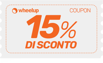 Al termine della registrazione riceverai un buono sconto del 15% di sconto utilizzabile online su wheelup.it dal 21/06/2021 al 30/9/2021. Il codice sconto è utilizzabile sulle "marche passione" Wheelup (Alike, Mtech, Hyp, Inproof, Zonzo, Blend, Stud75, My Ride). Sono esclusi i prodotti già scontati e gli airbag.